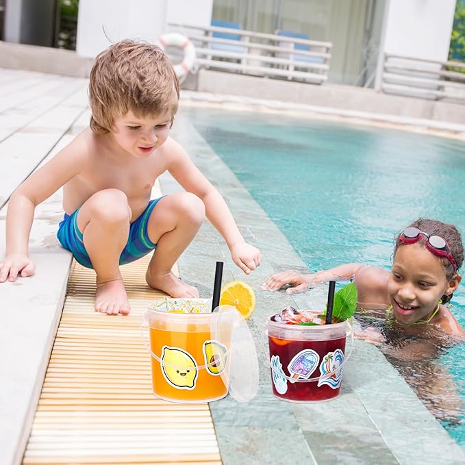 30 Pcs Ice Cream Buckets with Lids and Handles Drink Rum Buckets for Parties Cocktails Reusable Clear Plastic Food Containers with 50 Pcs Summer Stickers
