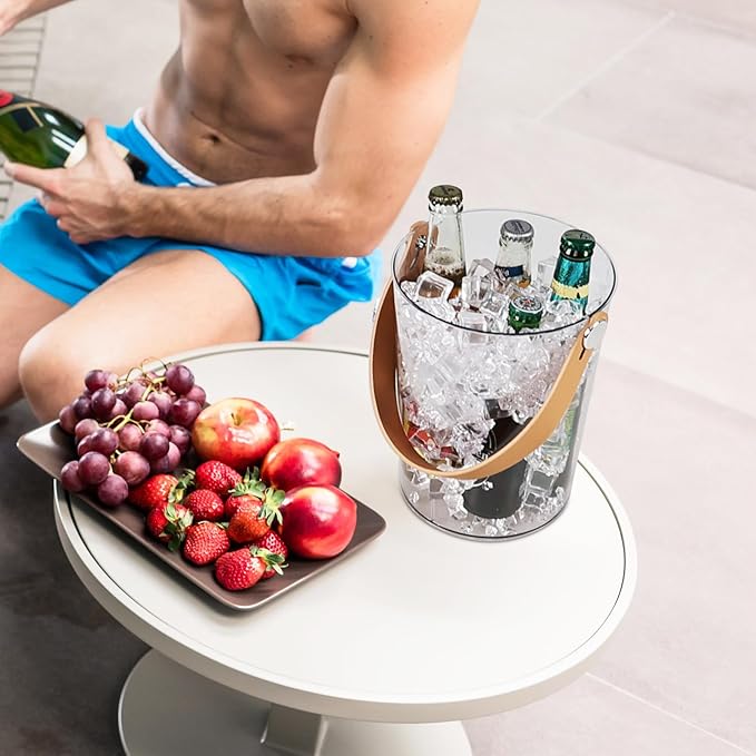 4-Pack 4.5 Quart Clear Acrylic Round Champagne Bucket, Plastic Clear Ice Bucket with Handle