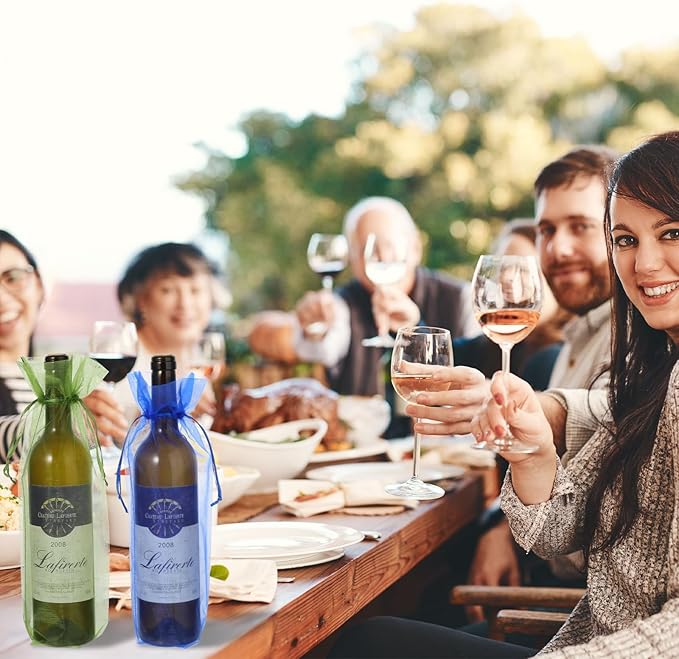 • Organza Bags: our wine bottle wraps are made of nice transparent organza fabric; Organza wine bags are made of transparent mesh fabric, elegant and transparent; You can use it to package precious wine for your friends and family