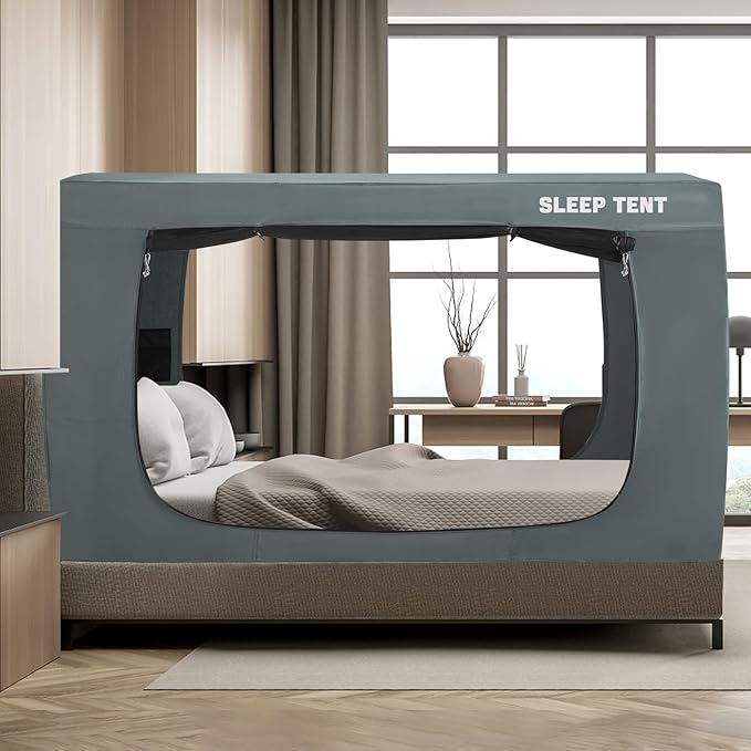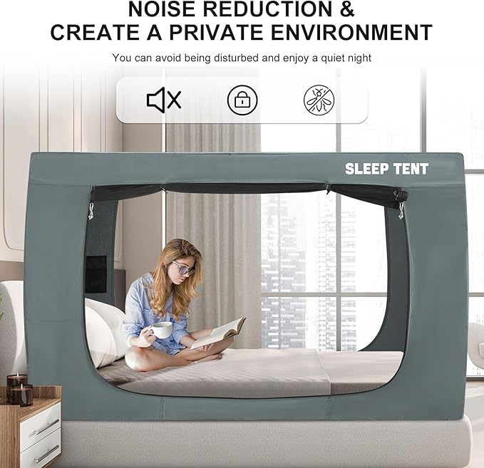 Bed Tent Twin Bed Canopy Dream Tents for Indoor Portable Blackout Tents Privacy Space Warm Breathable Sleeping Tents for Kids and Adult(Light Gray,Mattress Not Included) Reducing Light