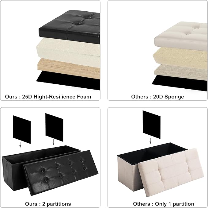 - Comfortable seats: This folding storage ottoman with thick padding foam and made from pu leather, easy to clean, constructed with a sturdy frame and give you premium comfort. The button design adds a unique touch to your room.