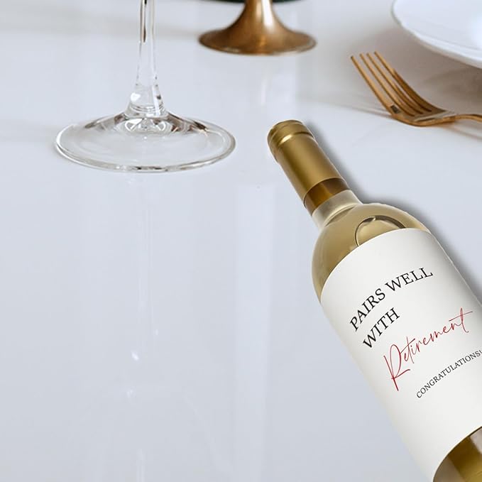 - 【Funny Retirement Wine Labels】Make retirement more fun! Our retirement wine label says "Pairs Well with Retirement", these unique wine labels are the perfect way to celebrate a successful retirement with funny sayings that everyone will love. Make memories last with these retirement wine bottle stickers.
