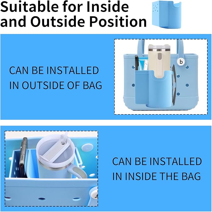 - 【Wide Compatibility】Suitable for Bogg Bag, Simply Southern Totes, or other unbranded rubber handbags. The bogg accessories can be installed on either side of the bag in any direction (cup holder inside or outside the bag). Fit for all three sizes of Bogg Bags