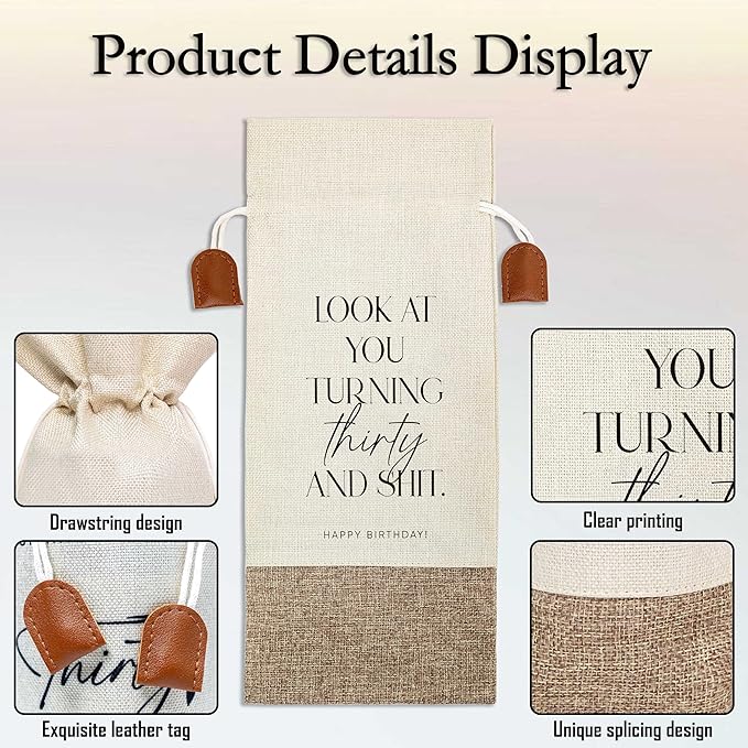 30th Birthday Wine Bag, Cotton Linen Wine Gift Bag With Drawstring, Wine Champagne Bottle Gift Bag, Thirty Years Old Birthday Gifts Wine Bag for Woman Man, 30th Birthday Party Favors-13