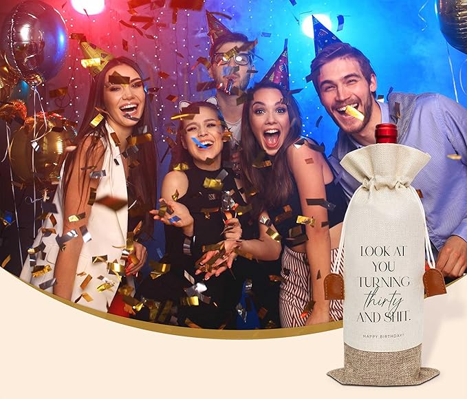 30th Birthday Wine Bag, Cotton Linen Wine Gift Bag With Drawstring, Wine Champagne Bottle Gift Bag, Thirty Years Old Birthday Gifts Wine Bag for Woman Man, 30th Birthday Party Favors-13