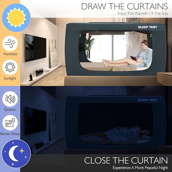 - BETTER SLEEPING EXPERIENCE:The twin bed tent is made from a unique fabric that provides up to 70% blackout so you don't have to worry about waking up to the sun. Perfect for those seeking solitude, children craving adventure,or those who need a sensory-friendly space to create a more restful night's sleep.