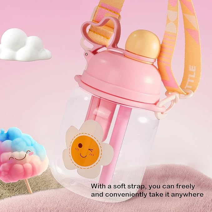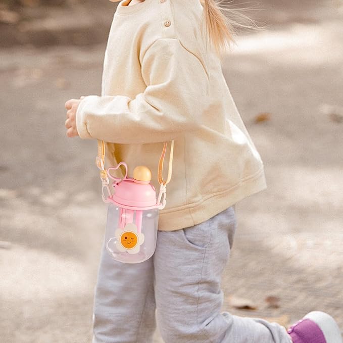 - EASY TO CARRY: Featuring a soft heart-shaped silicone handle, our kids water bottle with straw is easy to carry for little hands, promoting hydration on-the-go with its child-friendly design.
