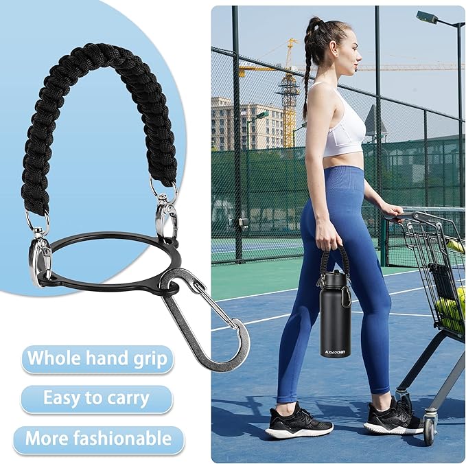 - Paracord Handles & Strap:40 oz water bottles Equipped with high quality colorful nylon braided Paracord Handles, bid farewell to the uncomfortable grip feeling, make the lifting more relaxed! Insulated 40 oz water bottle also comes with a 70.86 inches retractable strap, which can be worn directly on the body to free your hands and allow you to ride, climb, hike, rock climb and surf freely.