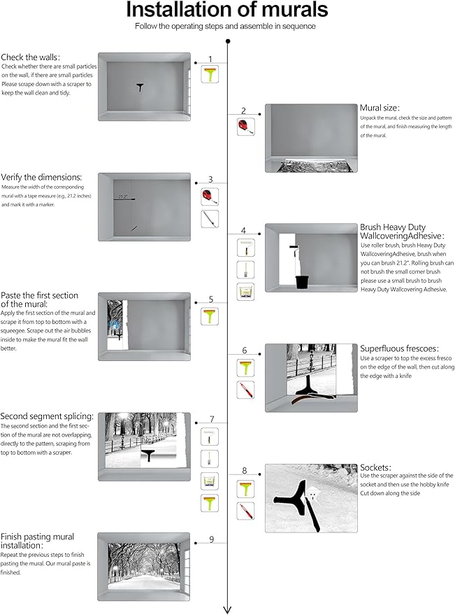 - Warm tip: This mural is not peel and stick, you need to buy your own glue, it is recommended to use Heavy Duty Wallcovering Adhesive.