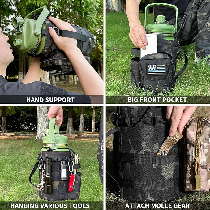 - 【Suitable For Traveling & Sport】: Wherever you go, you can bring a water jug with you. If you or your loved one is an outdoor worker, such as movers, truck drivers or couriers, this bottle is a lifesaver in the summer heat. It's also great for workout, hiking, camping, student football training, baseball training or backpacking. Our water bottle with tactical carring bag is a great gift idea!