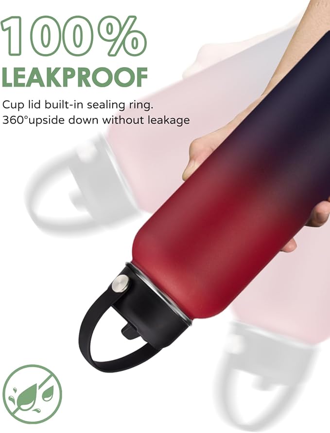 - 2 LEAKPROOF LIDS OPTIONS: This stainless steel water bottles with STRAW LID and AUTO SPOUT LID, both BPA-Free, leak-proof and one-hand control design, great car must have things! The pop-up spout lid for easy drinking and seals shut for no leaks when you're on the go. The straw lid makes it easy to enjoy spill-proof sips, and package come with a alternative straw & a straw brush for easy cleaning.