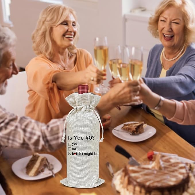 Birthday Wine Bag, Funny Wine Gifts for Women Men, 40th Years Birthday Gifts for Mom Wife Friend Bestie, Party Favor Wine Champagne Gift Bag With Drawstring -04