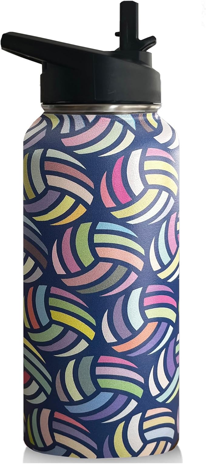 32 oz Volleyball Water Bottle Insulated Vacuum Stainless Steel Sports Water Bottle with 2 Lids (Straw and Spout Lid) for Gym Camping Hiking