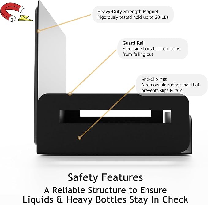 - UNMATCHED MAGNETIC STRENGTH - Our magnetic shelves feature powerful magnets that can securely hold up to 20 lbs, ensuring your items stay in place without any risk of falling