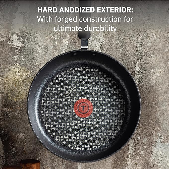 • Durable Construction: The hard anodized exterior and forged design is built to stand the test of time. Titanium Non-stick coating keeps food sliding smoothly, making cooking easier and cleanup a breeze.