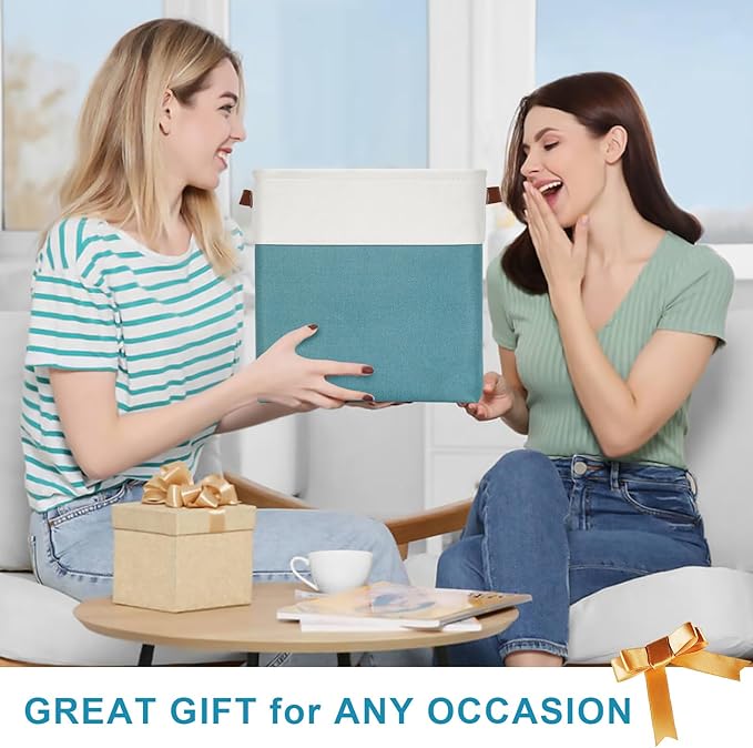 13x13 Cube Storage Bins, Collapsible Fabric Storage Box, 4 Pack Closet Baskets with Handles for Organizing, Shelf, Toys, Clothes, Home, Office, Nursery (Teal&White)