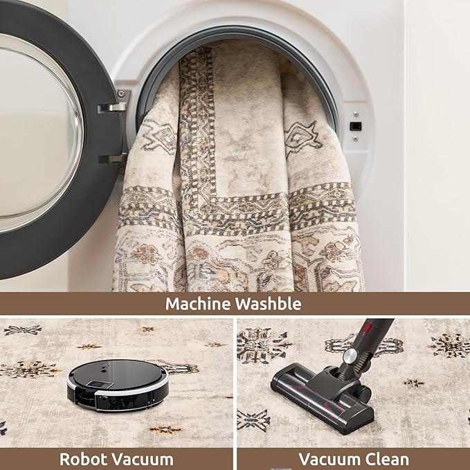 - Easy Care: To maintain washable rugs, regularly vacuum to remove dust and dirt. Carpet for bedroom is machine washable; simply use warm water below 40°C and a mild detergent or carpet cleaner if necessary. If the vintage rug is exposed to direct sunlight, rotate it periodically to promote even fading over time.