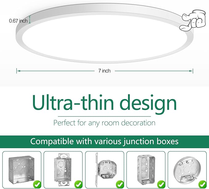 - Unprecedented Ultra-thin Ceiling Lights - We've used cutting-edge raw materials renowned for their flexibility and strength to create this incredibly slim round led light, measuring just 0.67 inches thick. This design surpasses the thickness limitations of traditional lights for ceiling. Regardless of your ceiling height, it seamlessly integrates into your home decor, adding a modern and stylish allure