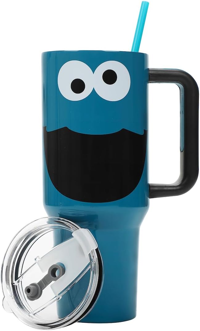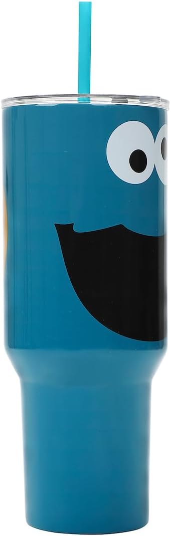Bioworld Sesame Street Cookie Monster 40 Oz Blue Stainless Steel Tumbler With Handle