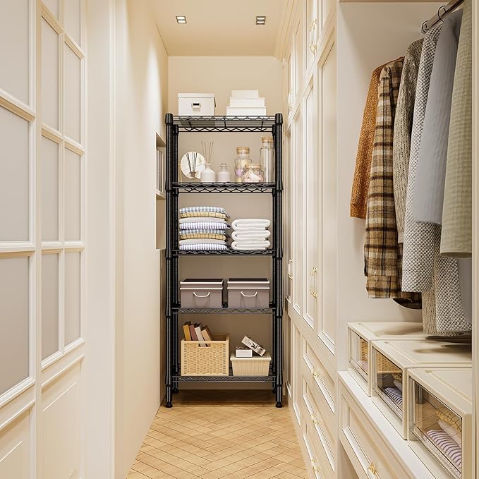 1250 lbs 5 Tier Shelf Metal Storage Shelves Wire Rack Closet Organizers for Garage Kitchen Bathroom Laundry Black 11.8" D x 23.6" W x 59.5" H