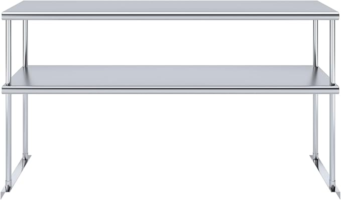 - 14 in. x 60 in. x 32 in. double-tier overshelf. Each tier holds up to 300 Lbs, providing robust support for heavy kitchen essentials.