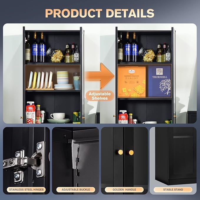 - Multifunctional Design Storage Cabinet: Each door with rubber buffers, reduces the noise when closing the door, and avoid the door from scratches. The back of the metal cabinet is equipped with two mounting holes for easy fixation to the wall to prevent tipping over,and providing added security for your home. The waist and bottom of the back panel have reinforcement ribs, further increasing the strength of the cabinet. The opening and closing device of the door is a silent shock absorbing cushion hinge. Can also be used to adjust the door spacing and the distance between the door and the cabinet.