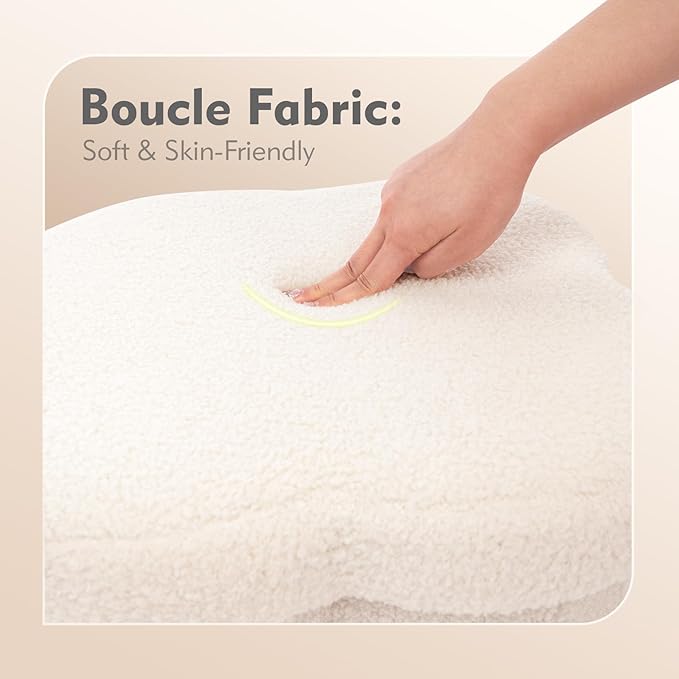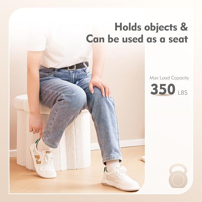 - 【Sturdy & Durable】The stool body wrapped in Top-quality Faux lamb fleece offers ultimate soft and comfort. high-density MDF support board, and non-woven lining. Soft boucle fabric combines with a thick pad to make your feet fully relaxed. 15 inches is an ergonomically comfortable height for most people.