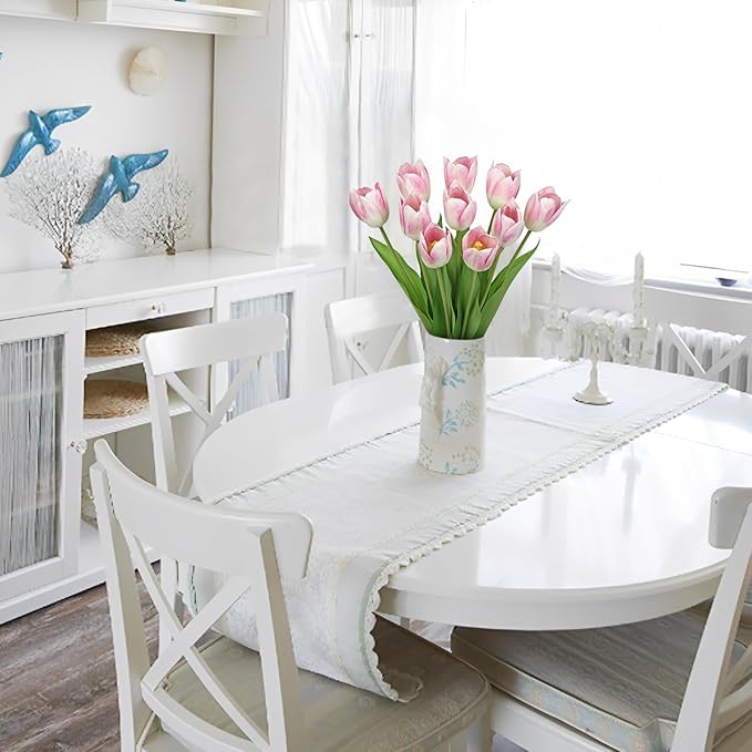 Artificial Tulips Flowers – 20" Long Stem Faux Tulips, 10PCS Real Touch Fake Pink Tulip for Vase, Farmhouse, Kitchen, Spring & Wedding Home Decor
