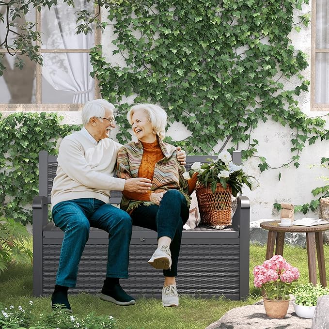 - Multi-functional Design - With its armrest bench design, this outdoor storage box doubles as a comfortable seating option for two people, making it perfect for gatherings and parties