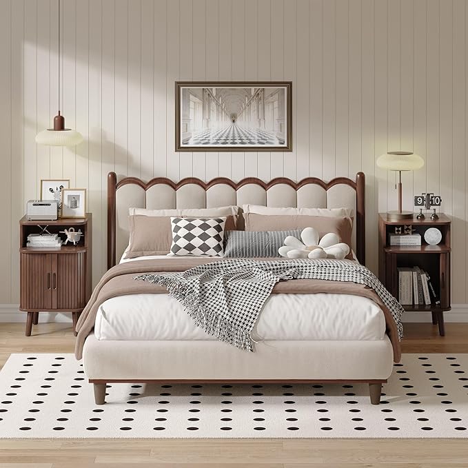 - 【Ample Storage Space】: This 26.7" tall nightstand with a spacious tabletop, unique open shelf and a large cabinet. From desk lamp, cup, electronic devices to books, snacks, etc., everything can find its storage space with this wood nightstand. Our bedside table allows you to hide the messy items perfectly while keeping your belongings within reach.