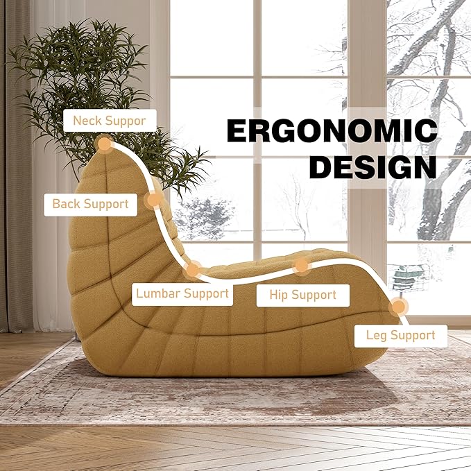 - 【Ergonomic Design】-Designed with your comfort in mind, the bean bag chair features a thoughtful ergonomic design that provides exceptional support for your neck, back, lumbar, hip and leg region. The high-elastic memory foam filling conforms to your body, offering targeted support and ensuring a cozy sitting experience.