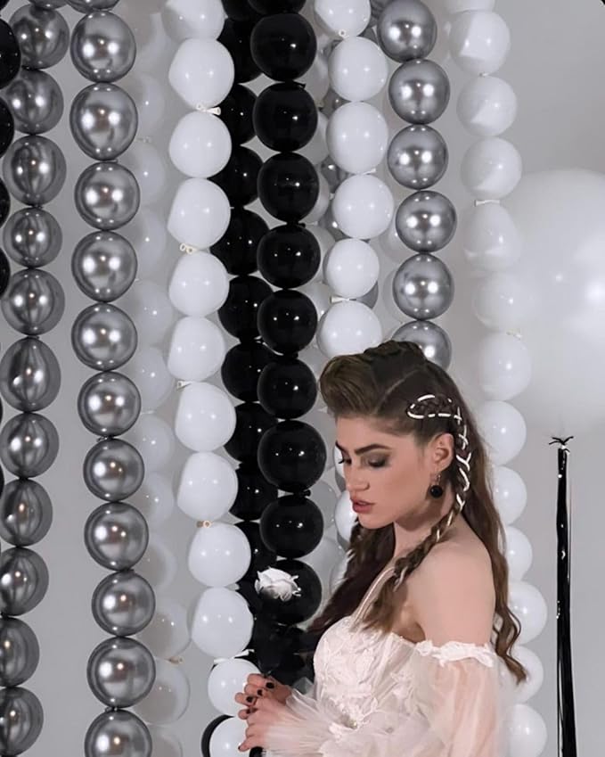 - đź’«Diverse assembly - The linking balloons is an excellent choice for balloon chain decoration, balloon wall creation, and various balloon model making. It can be used as a decoration for balloon chains, it can be hung on the ceiling alone to form a hanging balloon chain, can be used for balcony balloon chain decoration, and can be freely matched and connected the black balloons and white balloons according to different styling needs.