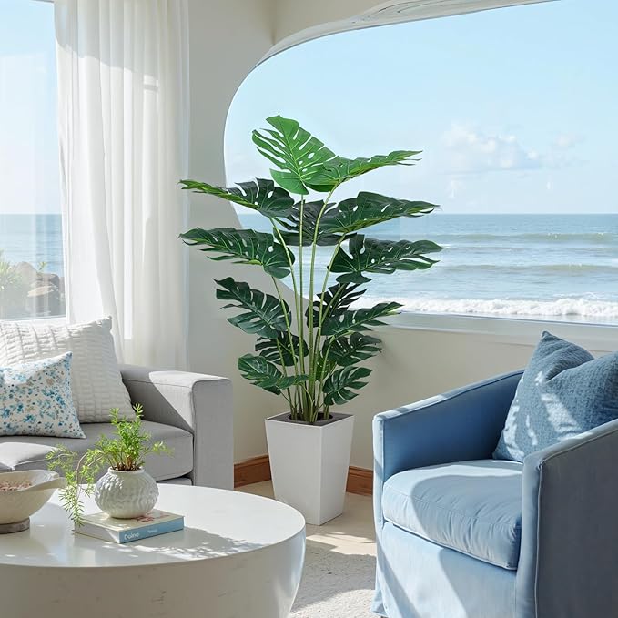- 【Suitable for any Space】: Standing at 5 feet tall, this fake monstera plant creates a dramatic focal point without overwhelming rooms. Its size makes it a great fit for Home Office Decor Indoor Outdoor Housewarming Gift.