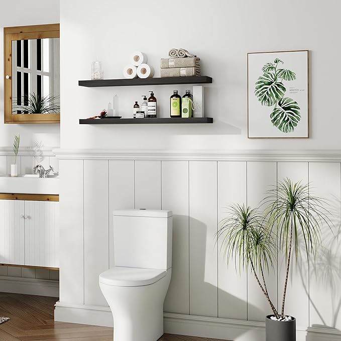 BGMG Wood Floating Shelves 36 inch Long,Wide Rustic Wooden Wall Shelves for Bathroom Living Room Bedroom Kitchen Farmhouse Set of 2-36x6.7x1.25 inch-Black