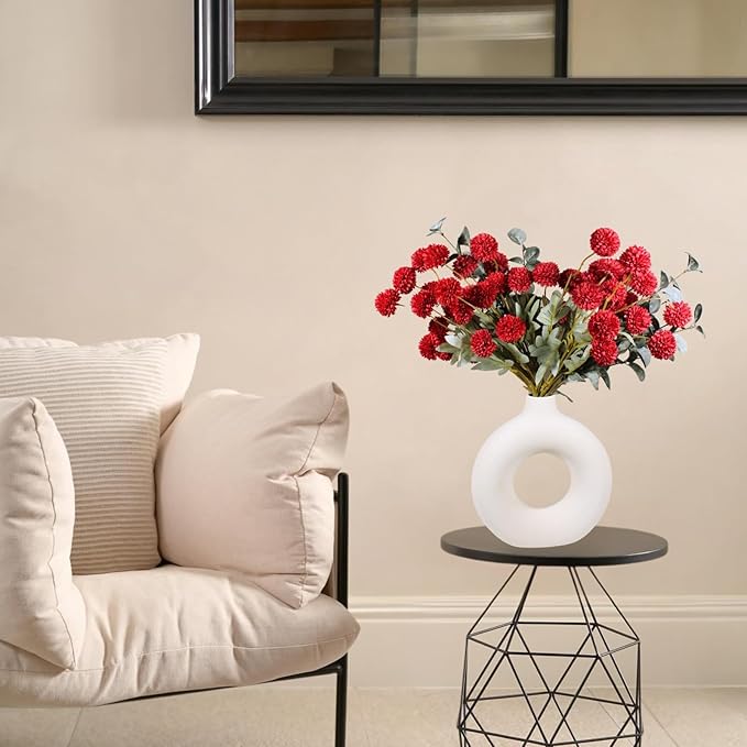 - Elegant Burgundy Centerpiece - Enhance your wedding with our burgundy artificial flowers, perfect for creating sophisticated burgundy wedding decor. These realistic dark red small mum flowers complement any table setting, adding a touch of love to your special day. Each package include 10 stems of burgundy flower stems in total of 50 flower balls, and 2 branches of green eucalyptus stems.