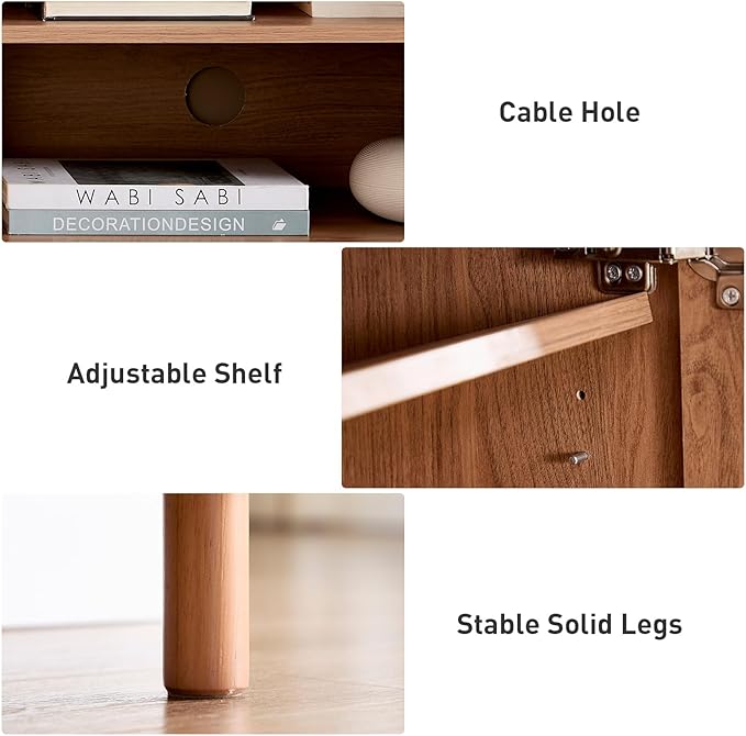 - Selected Material: This walnut tv console table is composed of sturdy MDF and particle board, which can better support your TV and meet your expectations for appearance. Door hinges are built with high-quality hardware so they can last longer without breaking after a few uses