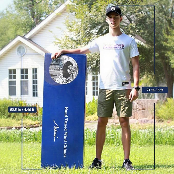 - 78 Inch large Wind Chimes - The longest tube of the large wind chimes is 47.6 Inch,diameter is 2.4 Inch.6 aluminum powder-coated tubes,every metal tube of this large wind chime is hand-tuned by our professional tuning experts to achieve a superior musical performance.Heavy duty nylon cording high density striker for a clear tone and resonances.