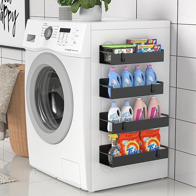 4 Pack Magnetic Spice Rack Organizer for Refrigerator and Oven, Black Fridge Organizers and Storage for Kitchen