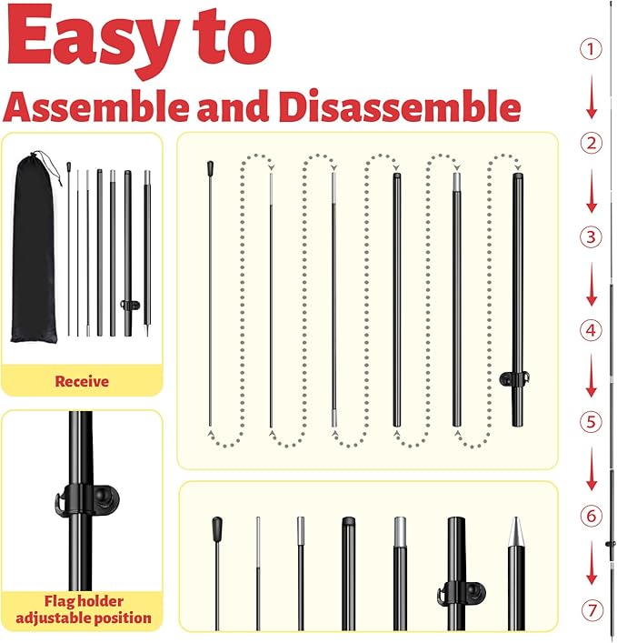 - Easily assemble and disassemble: Just assemble the flagpole, insert the open flag then place them into the ground stake. Then insert the H-shaped stake into the real estate signs and finished. Easily disassemble and store, and it can be used as many times as you want