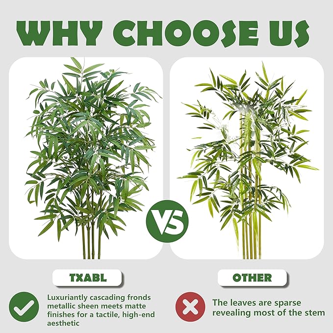 - Safe & Durable Materials: This highly realistic faux bamboo plant indoor is made of durable and premium polyester material, real touch, waterproof, eco-friendly and harmless. It's easy to clean, just use a duster. No special maintenance required. The tree decor leaves are thickened, more sturdy and durable. Carefully mimic the real texture of plants, under the light, it can better present the light and shadow effect of plants