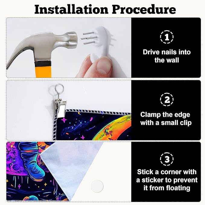 - Versatile Tapestry - With its durable materials and unique design, this blacklight tapestry can serve as a wall hanging tapestry, indie room tapestry, curtain tapestry, dorm room tapestry, ceiling tapestry, bedroom tapestry, glow-in-the-dark artwork or even a picnic blanket.