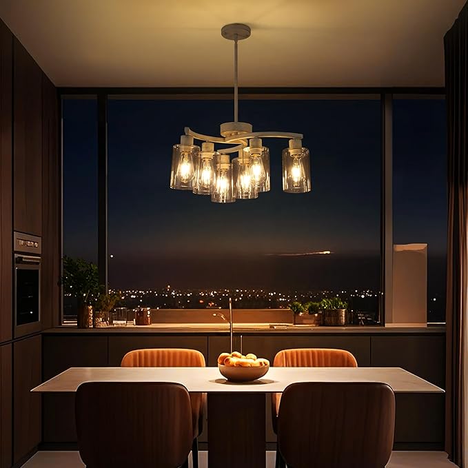 - Dimmable: Max 6 x 60W, E26 Base (bulb not included), compatible with LED, incandescent, CFL, halogen. White hanging chandelier also compatible with dimmer, you can use a dimmable bulb to create a warm and relaxed atmosphere (Dimmer switch need to buy separately).