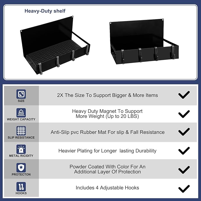 - Easy to Use for Saving Space: our magnetic shelves do not need drilling or installation, you just need to open the package, put the non slip pad on the shelf, and then secure it to the metal surface; The compact and efficient design of this 12 x 6 x 6 inches magnetic tool box serves as a space saving solution, helping keep your working area neat and decluttered