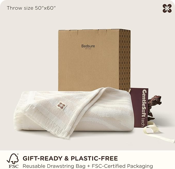 Bedsure 100% Cotton Throw Blanket for Couch - Chenille Woven Textured Blanket Gifts for Women, Cozy and Soft for All Seasons, Home Decor Boho Throw for Bed, Sofa, Oat Milk, 50x60 Inches