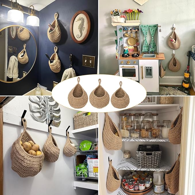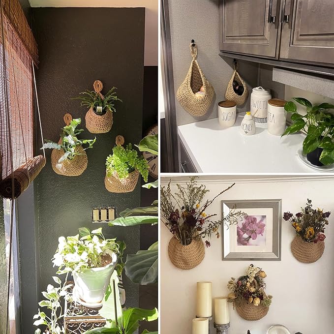 - 【Durable Jute Material】 Crafted from strong Hemp Rope, these hanging baskets for organizing are designed for long-lasting use. The natural material adds a rustic and earthy touch to any space.