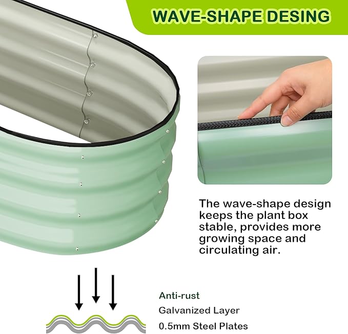 - 🌿 Superior Quality: Constructed from high-grade galvanized steel, this outdoor raised garden bed features robust double-layer corrosion resistance. Its elegant oval shape not only adds to your garden's aesthetics but also enhances durability under pressure, ensuring a reliable and long-lasting gardening solution.