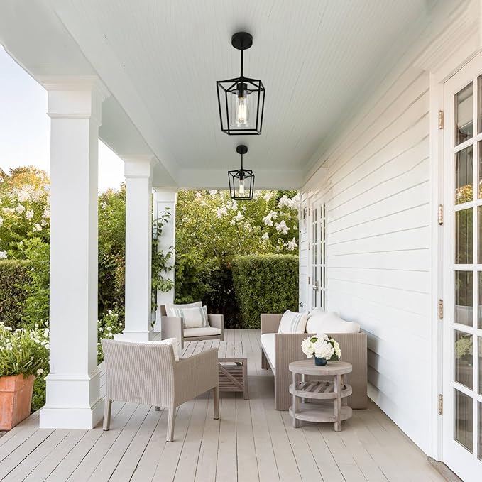 - 【Industrial Pendant Light】This black pendant lights is made of sturdy metal frame and clear glass lampshade, gives off soft light and gets modern statement on a classic lantern shape. This sleek and minimalistic pendant lighting for kitchen island would be a focal point in your kitchen island, dining room, front porch, hallway, foyer, entryway, ect.