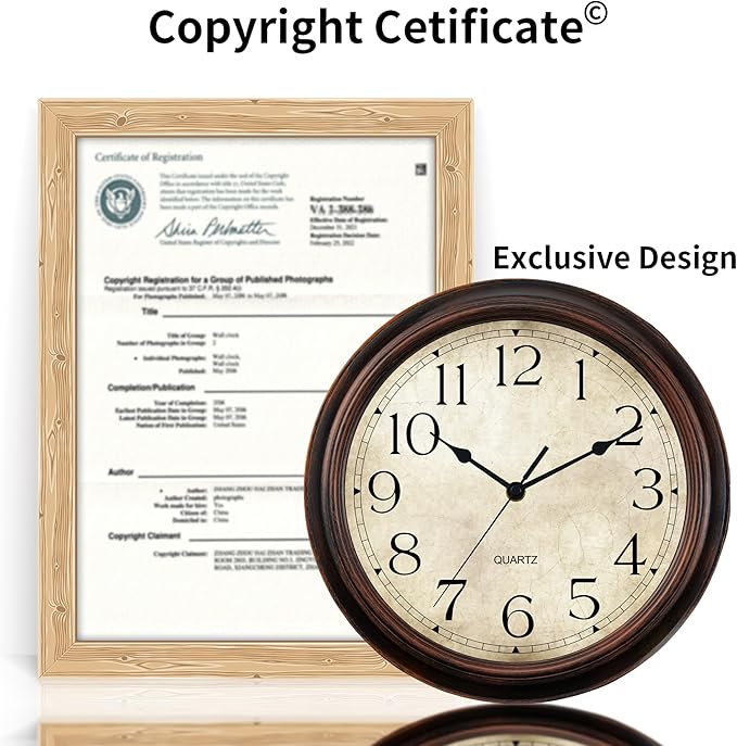 14 Inch Wall Clocks Battery Operated Silent Non-Ticking Analog Wall Clock Vintage Retro Rustic Style Decorative for Living Room Kitchen Home Office(Bronze)