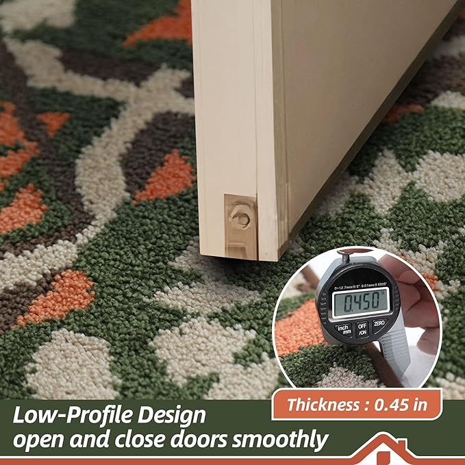 - Stylish and Low Profile Design: Boho geometric floral patterns are suitable for most kinds of home décor. Our doormats measure 20" x 32" x 0.45", low-profile design and reinforced overlock edges to ensure that doors won't get stuck or the door rug go curling. Note: Please confirm the height of the door gap before purchasing