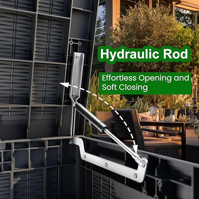- Large Capacity for a Variety of Outdoor Items:The 100-gallon deck box offers plenty of space for larger items such as outdoor cushions, garden tools, or pool accessories, keeping your outdoor area clutter-free.